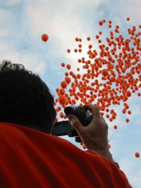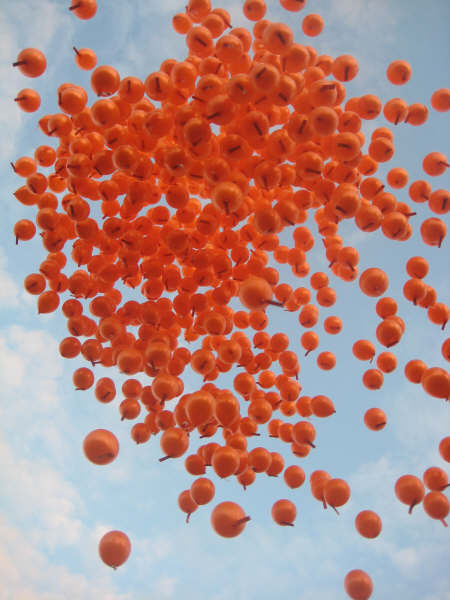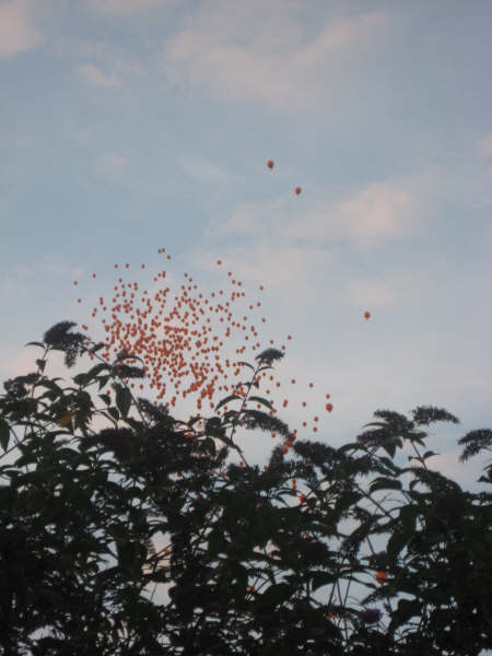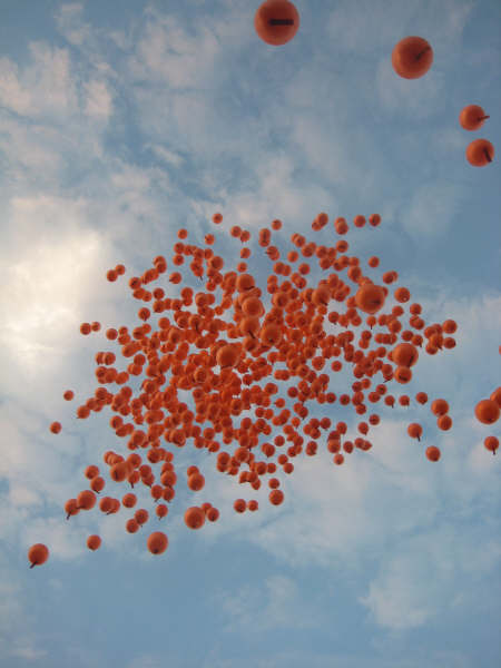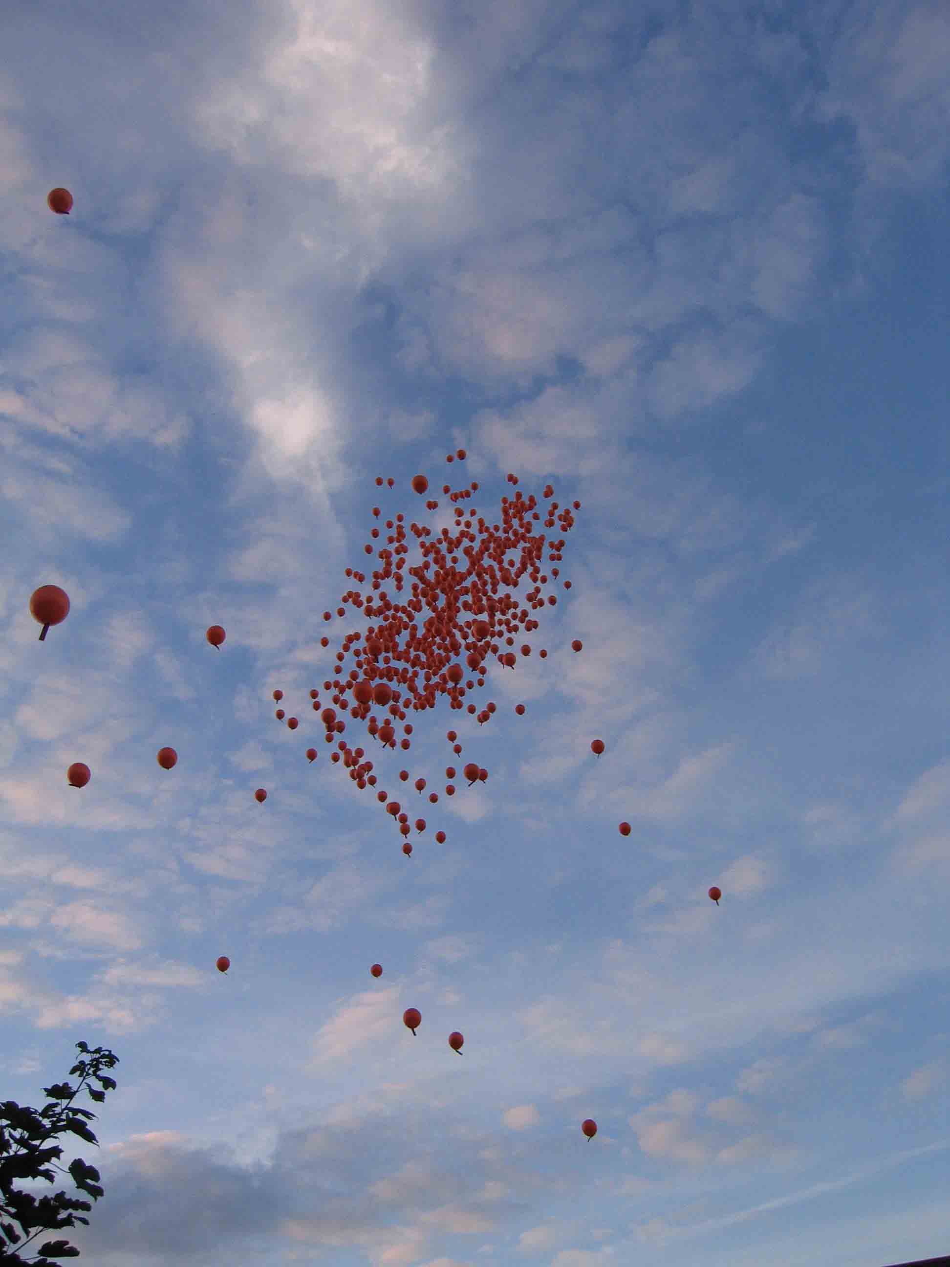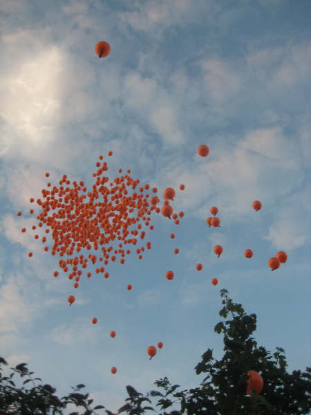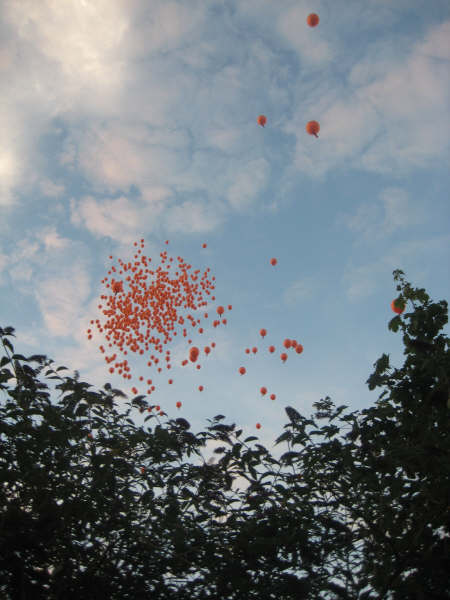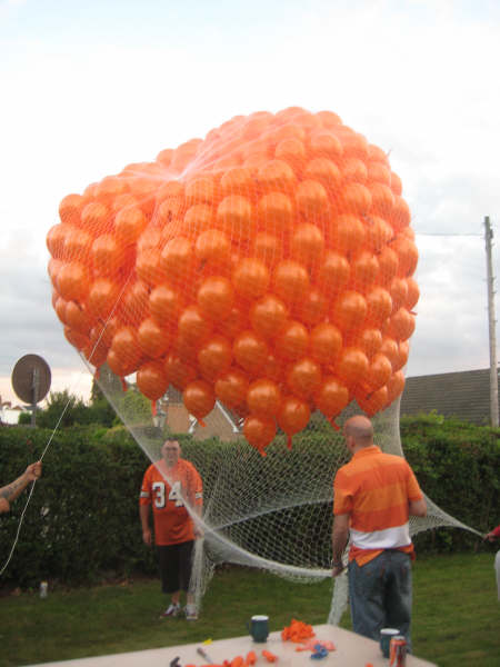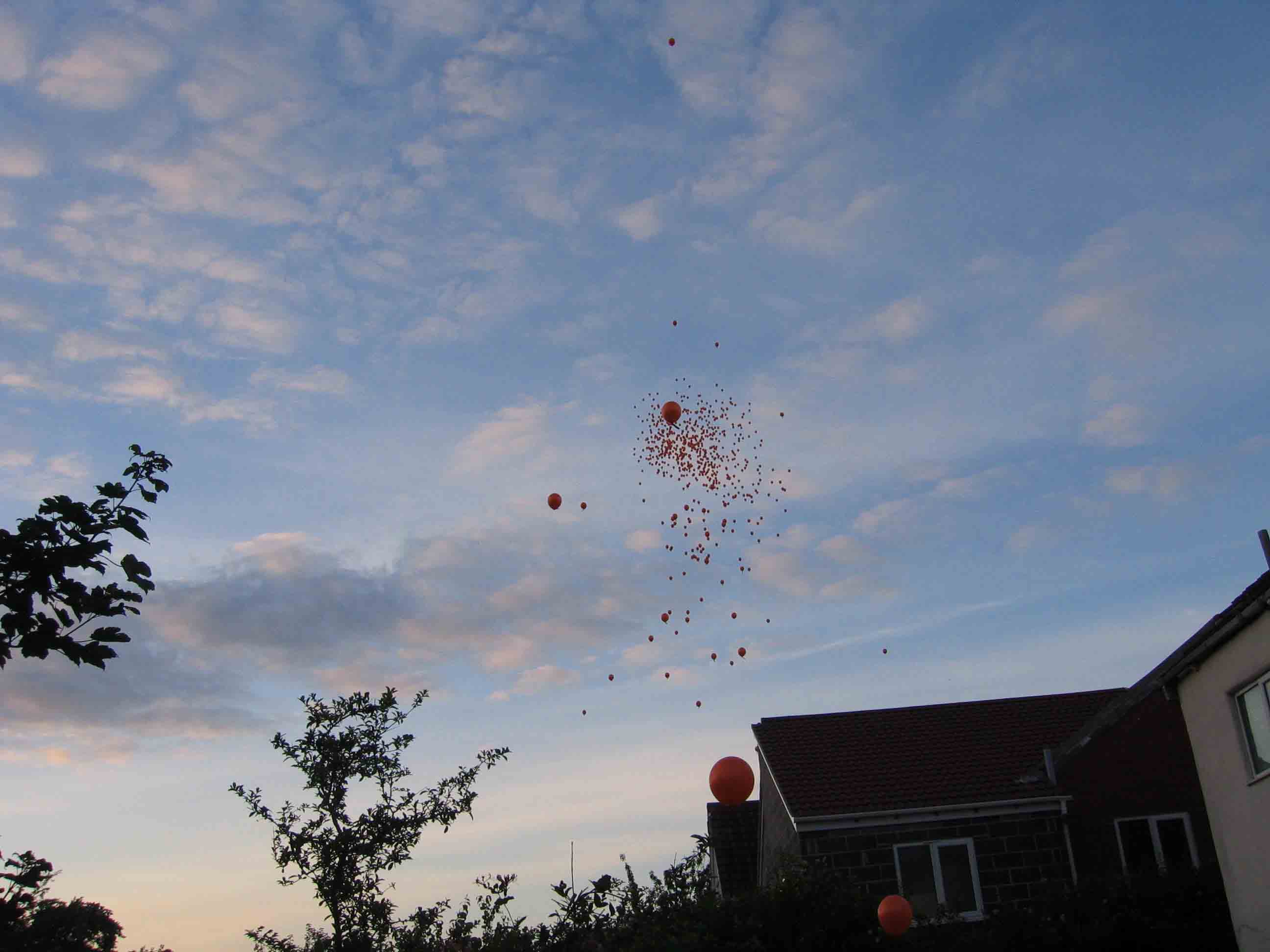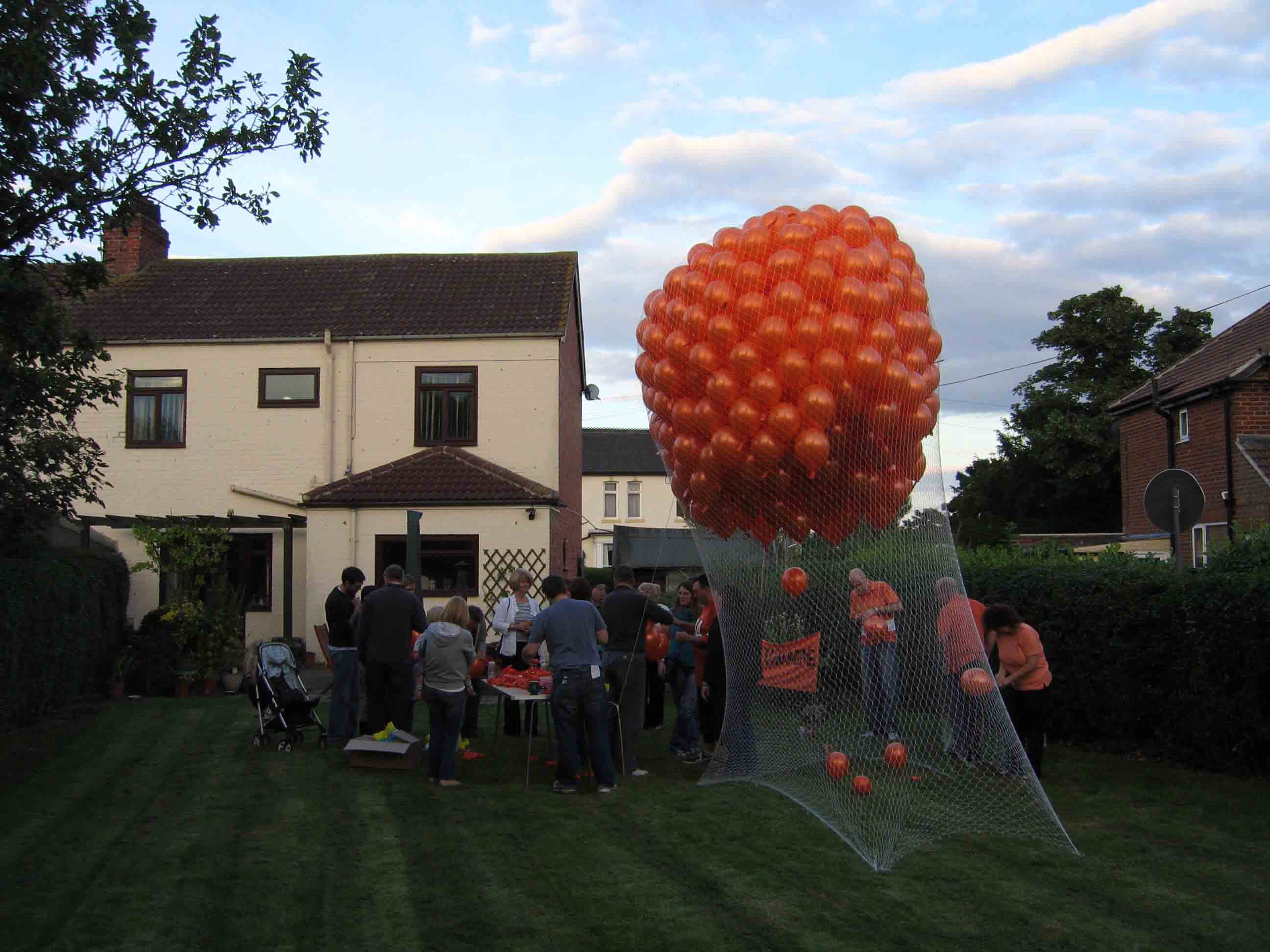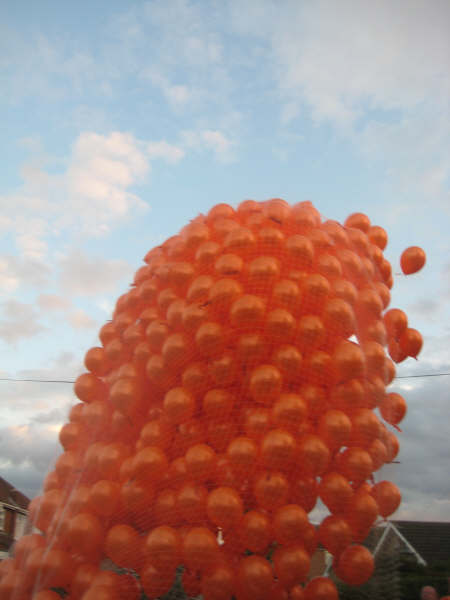 Here are some photographs taken at the start of the 2008 Balloon Race 08/08/08. 750 orange balloons were released from the garden of Team Graeme HQ in Stockton.
